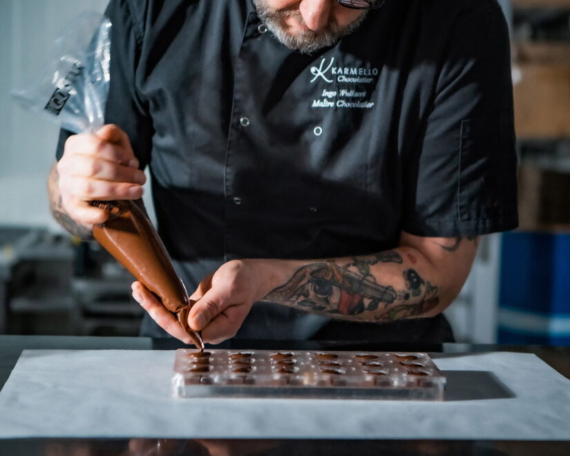 Our collections are largely handcrafted. We work with a master chocolatier who gained his experience in some of the world’s best chocolate schools and ateliers. Today, he passes this knowledge on to our own chocolatier team, develops their skills, and ensures that craftsmanship remains at the core of every product that reaches our customers.